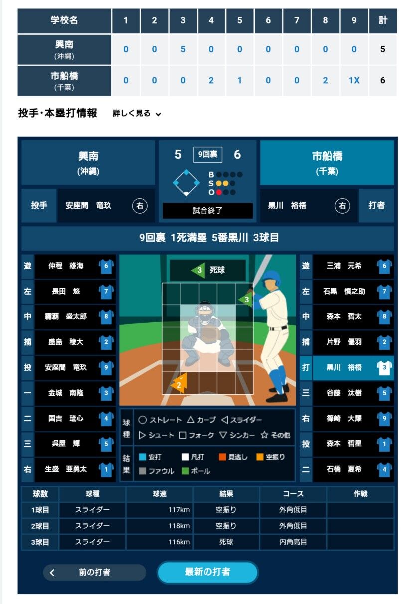 15:30 第四試合 興南(沖縄) 5-5 市船橋(千葉)